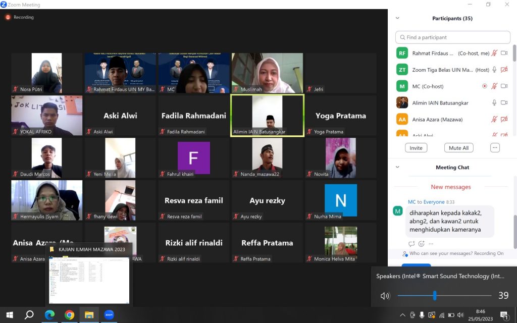 Batusangkar – Program Studi Manajemen Zakat dan Wakaf mengadakan kegiatan kajian ilmiah pada hari kamis 25 Mei 2023 secara daring tema yang diangkatkan adalah “Kiat Sukses Menjadi Konsultan Cash Waqf Bagi Generasi Milenial” dengan mendatangkan narasumber yang kompeten dibidang perwakafan yaitunya Dr. Muslimah Hikam, S.ThI.,M.Ag kegiatan ini dihadiri oleh Wakil dekan III Fakultas Ekonomi dan Bisnis Islam, dosen, tenaga kependidikan dan mahasiswa. Kegiatan ini dibuka oleh bapak Dr. H. Alimin, Lc.,M.Ag dalam sambutannya beliau mengajak kepada seluruh mahasiswa yang hadir dalam kegiatan kajian ikmiah ini agar mengikuti kajian ini dengan baik sehingganya dapat menambah ilmu pengetahaun dan wawasan terkait perkembangan perwakafan di Indonesia khususnya wakaf uang. Kegiatan ini juga menambaha ilmu yang tidak hanya didapatkan di kelas perkuliahan. Dalam penyampaiannya pemateri mengajak kepada seluruh mahasiswa agar optimis dan bersemangat menjadi pejuang wakaf dengan mendalami ilmu perwakafan secara teoritis dan praktis.